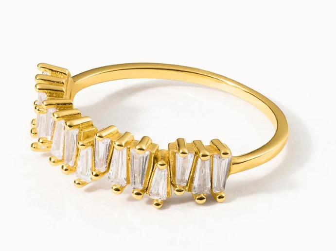 Gefertigt aus hochwertigem 925 Sterling Silber, wahlweise 18K vergoldet, rosévergoldet oder in klassischem Silber, bietet der Ring eine edle Basis für den funkelnden Steinbesatz. Die präzise gefassten weißen Zirkonia sorgen für einen eleganten, brillanten Schimmer.